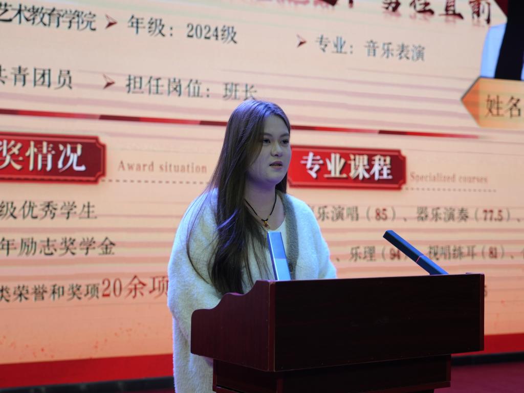 24级国家励志奖学金获得者代表以“立足服务社会、践行青年担当”为核心分享道:她们扎根实践服务他人,在锤炼本领、全面发展中精益求精,以责任担当提升专业竞争力,最终收获了荣誉认可。