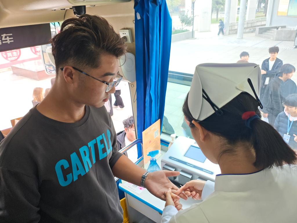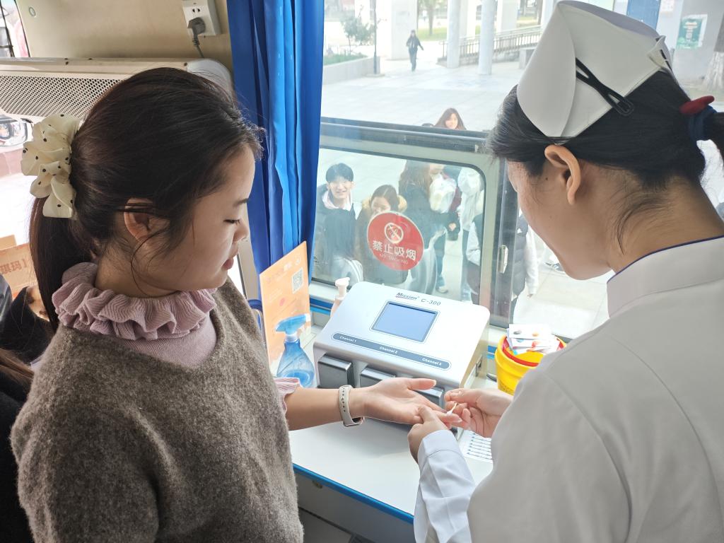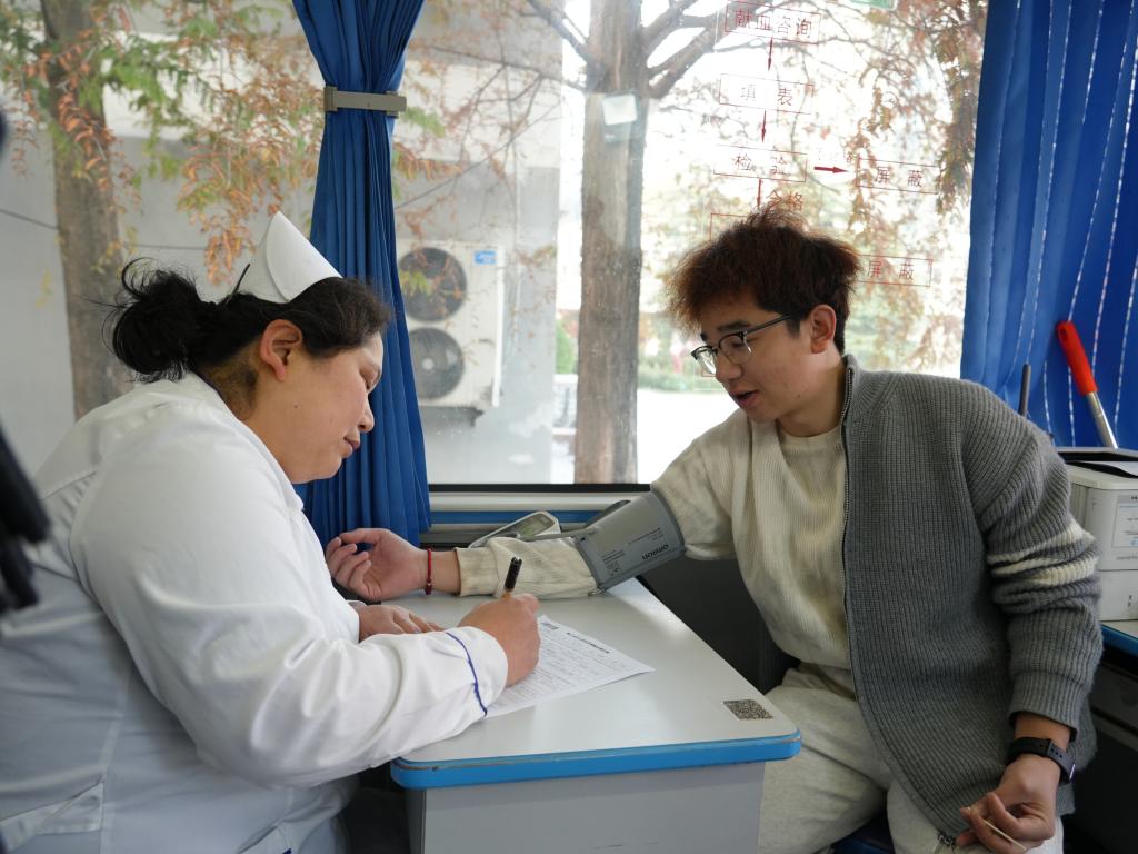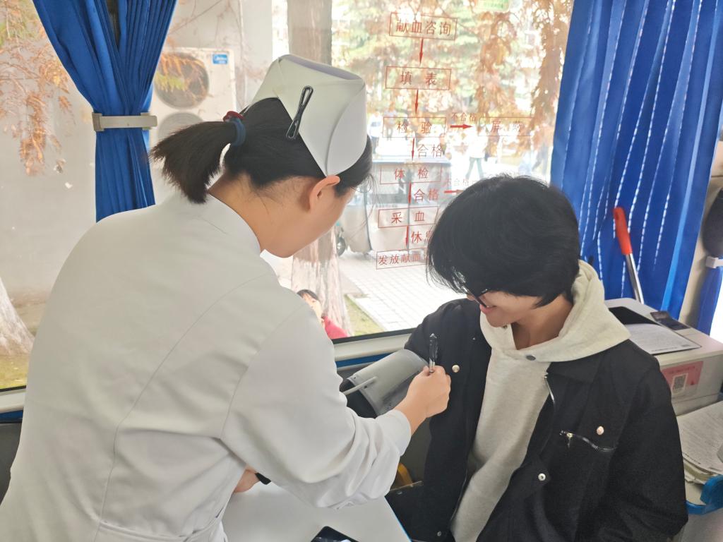 医护人员提前备好补给物资,耐心为每位志愿者进行血压测量、血型检测等细致检查,确保献血过程安全有序。