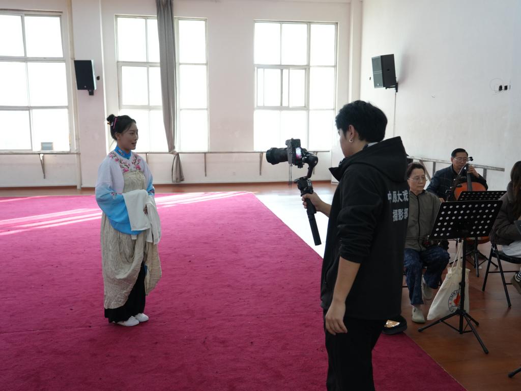 录制开始后,工作人员高效完成设备调试,随即投入拍摄工作。镜头下,身着练功服的同学们全心投入,从一招一式的基本功到韵味十足的唱腔练习,每一个环节都专注投入。在悠扬的伴奏声中,他们将戏曲表演的艺术神韵展现得淋漓尽致。