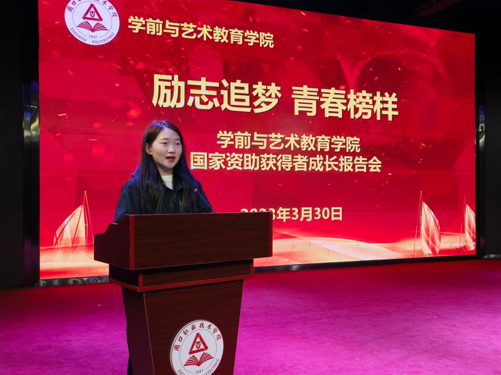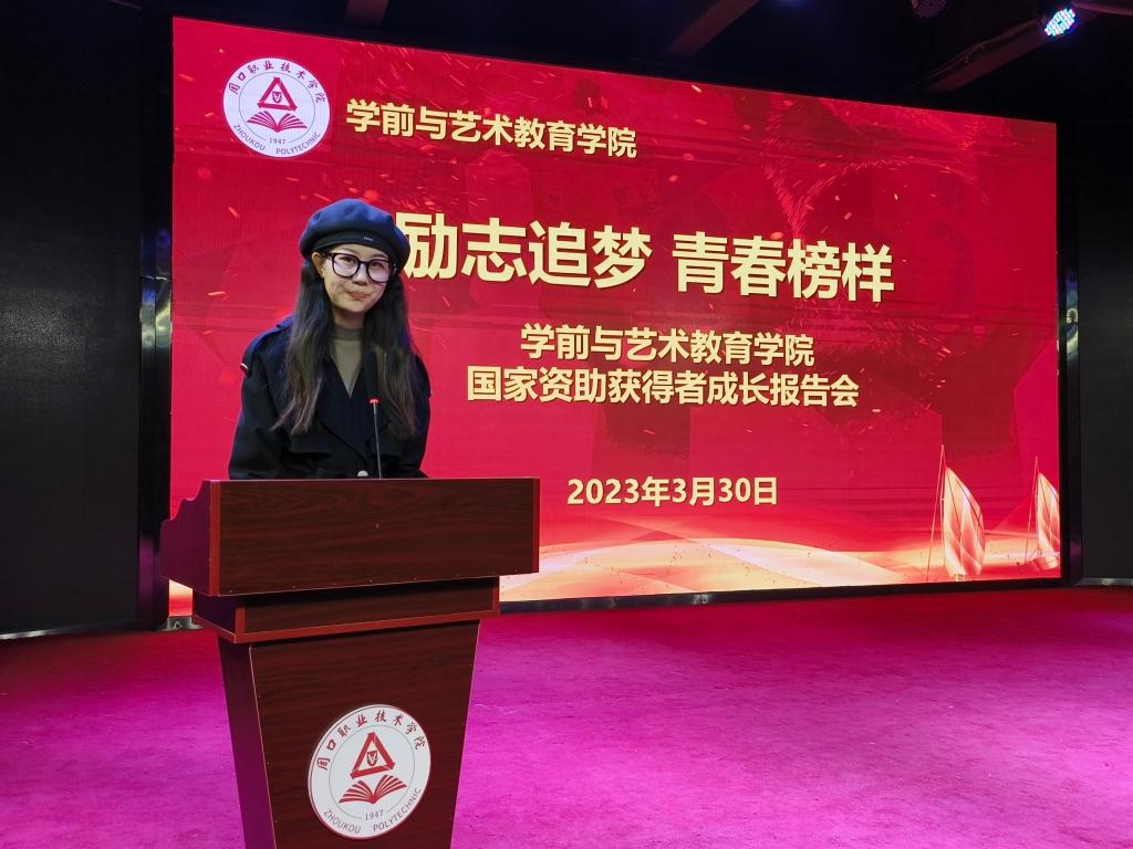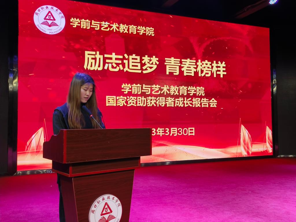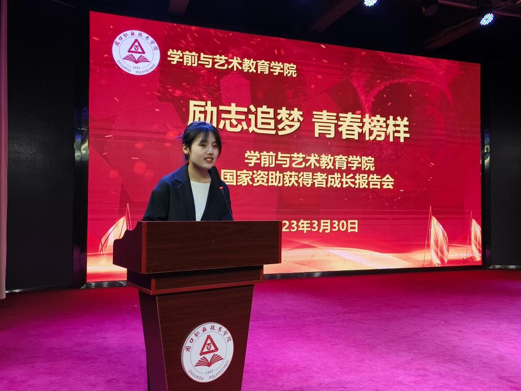20级学前教育十班吕文芳发言讲到:“在新的征程上,我将进一步仰望星空,扎实学习,努力继续奋斗,为自己的青春增添色彩,我相信在座的同学们也都有自己的梦,自己那些大大小小的梦,让我们一起为了自己的梦想去规划去奋斗吧”