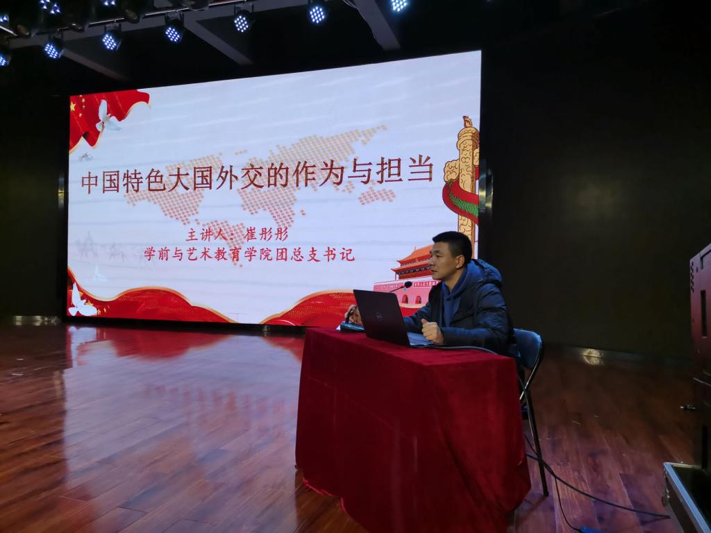 为加强对广大青年团员的意识形态教育,增强中华民族自豪感,拓宽视野,12月10日晚7点,yl7703永利团总支在公司一楼演播厅开展“中国特色大国外交的作为与担当”主题团课,此次团课由团总支书记崔彤彤主讲,100余名团员聆听了团课。