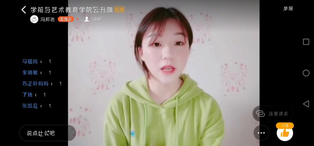 2018级学前教育五班的赵晓瑜同学作为员工代表进行发言。他在发言中提到,抗疫一线的英雄们是春天里的天使,用实际行动诠释共产党员的使命与担当,他们牺牲自己与家人相聚的时间,奋不顾身地与疫情作斗争,这种精神值得我们学习。宅在家的我们,应当继续以“停学不停课”的方式在家进行网课,以新的方式为祖国加油。