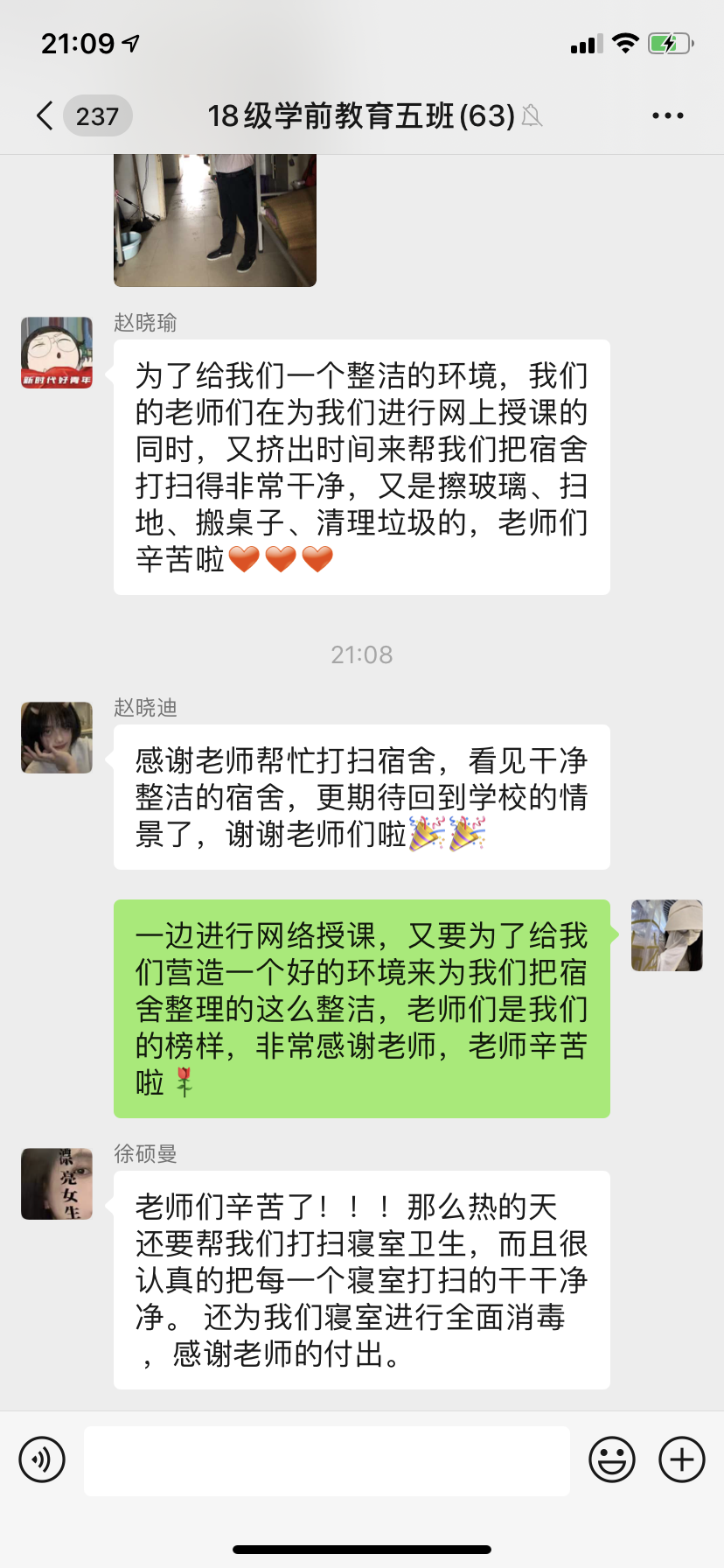 看到同学们温暖的话语,王爱东书记代表全体教师向同学们表达心声:真正的师生情谊,不需要客套的寒暄和招呼,眼睛可以说话,行动可以代替老师对员工的爱。亲爱的同学们,你们是我们老师颠扑半辈子得到的最美丽的馈赠。你们始终在我们身边,始终微笑着,陪伴着,温暖着。浪奔、浪流,也因你们阳光,努力,我们而喜;也因你们淘气,我们而愁。滔滔江水永不休,淘尽了世间事,因为有你们,我们仍愿转千湾,翻千浪,不畏辛苦,等你们返校!心情和季节达到了极好的相融。