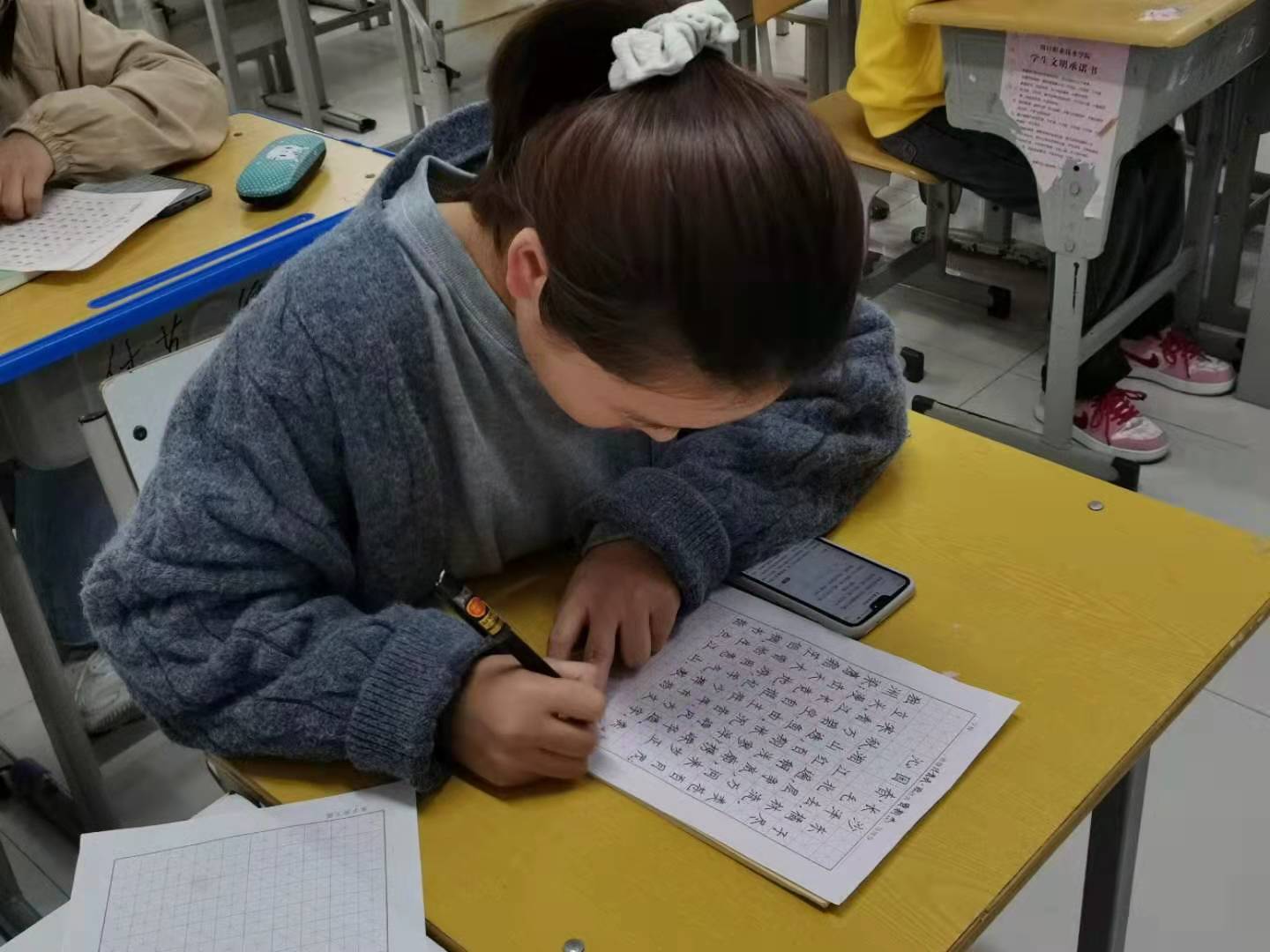 为弘扬中华优秀传统文化,进一步普及规范汉字的书写。yl7703永利于10月7日下午在教室举行硬笔字书法大赛。