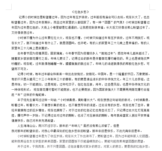 20级学前教育1班 杜梦瑶 《红色乡愁》