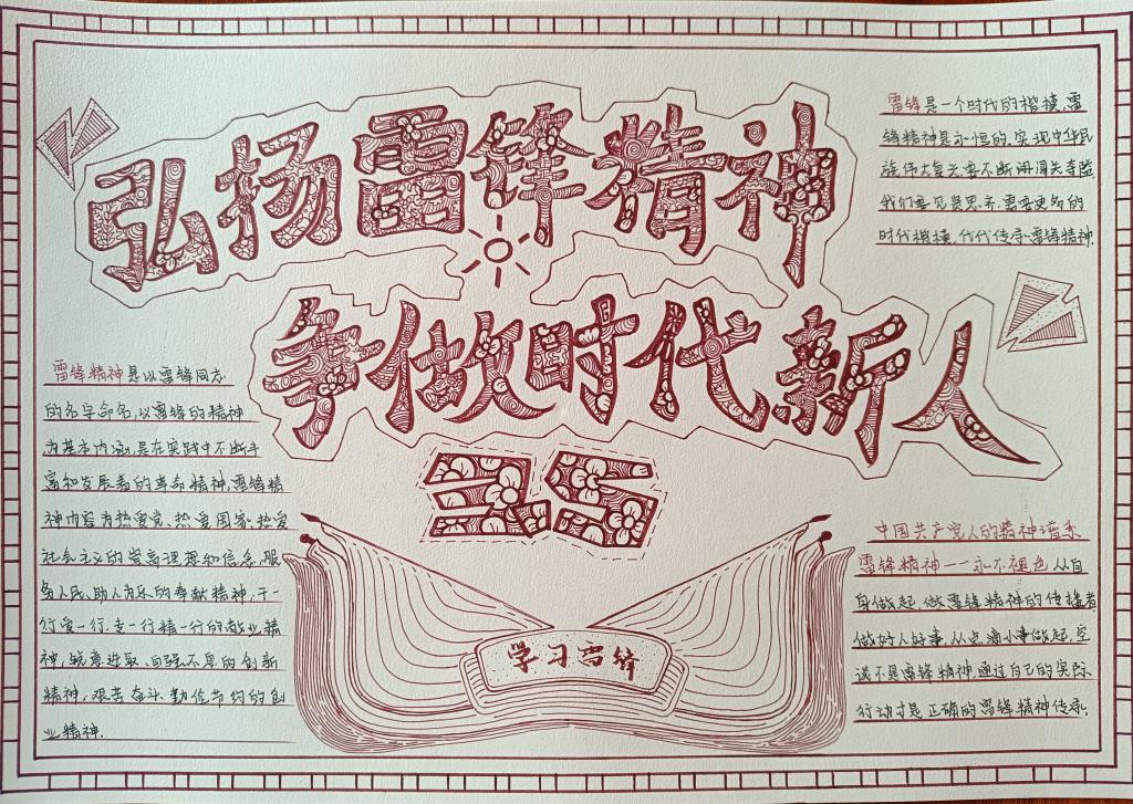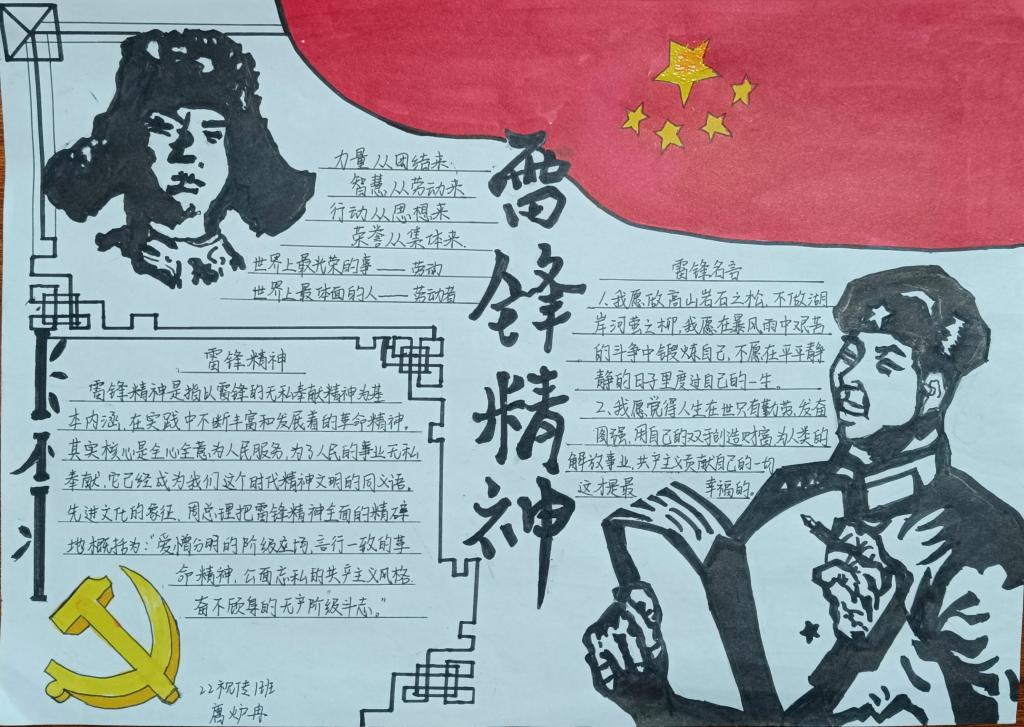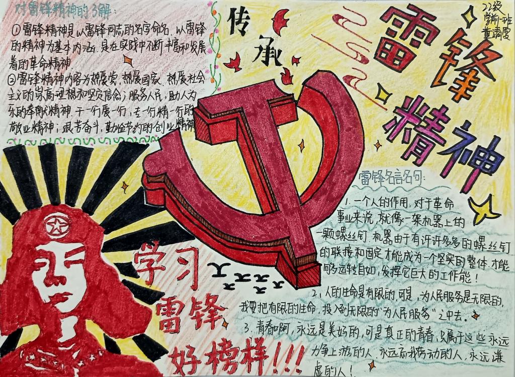 为深刻把握雷锋精神的时代内涵,让雷锋精神在新时代绽放更加璀璨的光芒,培养当代青年高度社会责任感和良好的精神面貌,3月12日,公司开展弘扬雷锋精神主题手抄报系列活动。