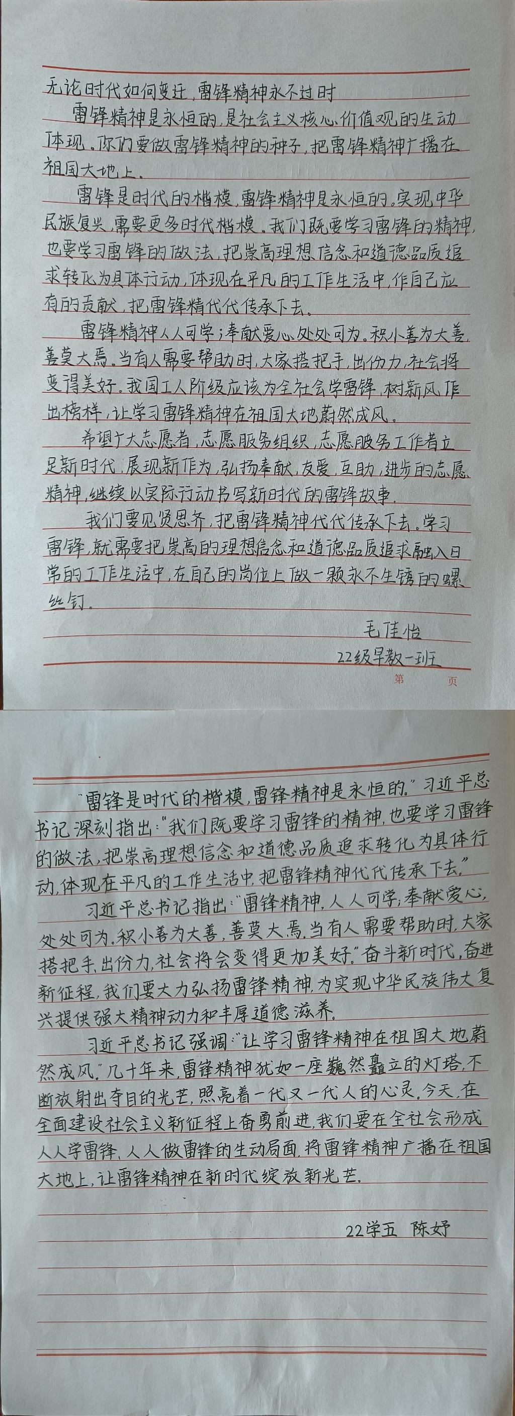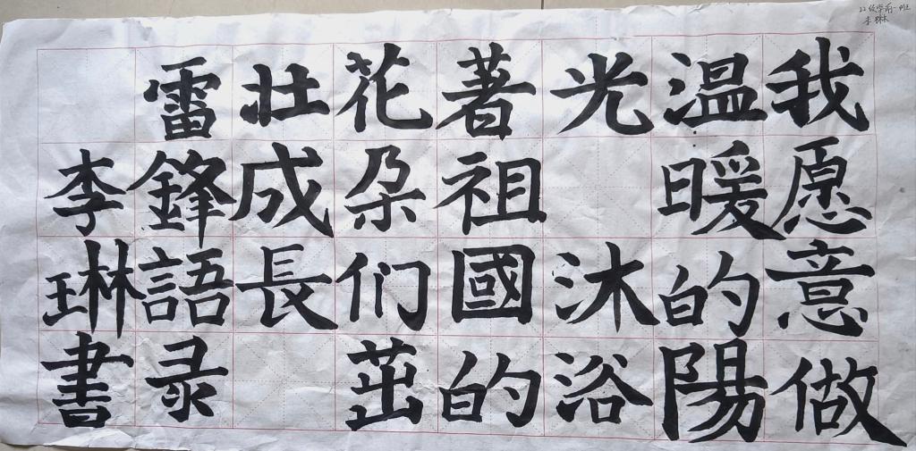 本次书法活动分设硬笔和毛笔等形式,同学们一丝不苟,将身心融于笔端,用笔赞美心中榜样,书写青春理想,用书法的形式,书法的意境,升华对雷锋精神的理解。