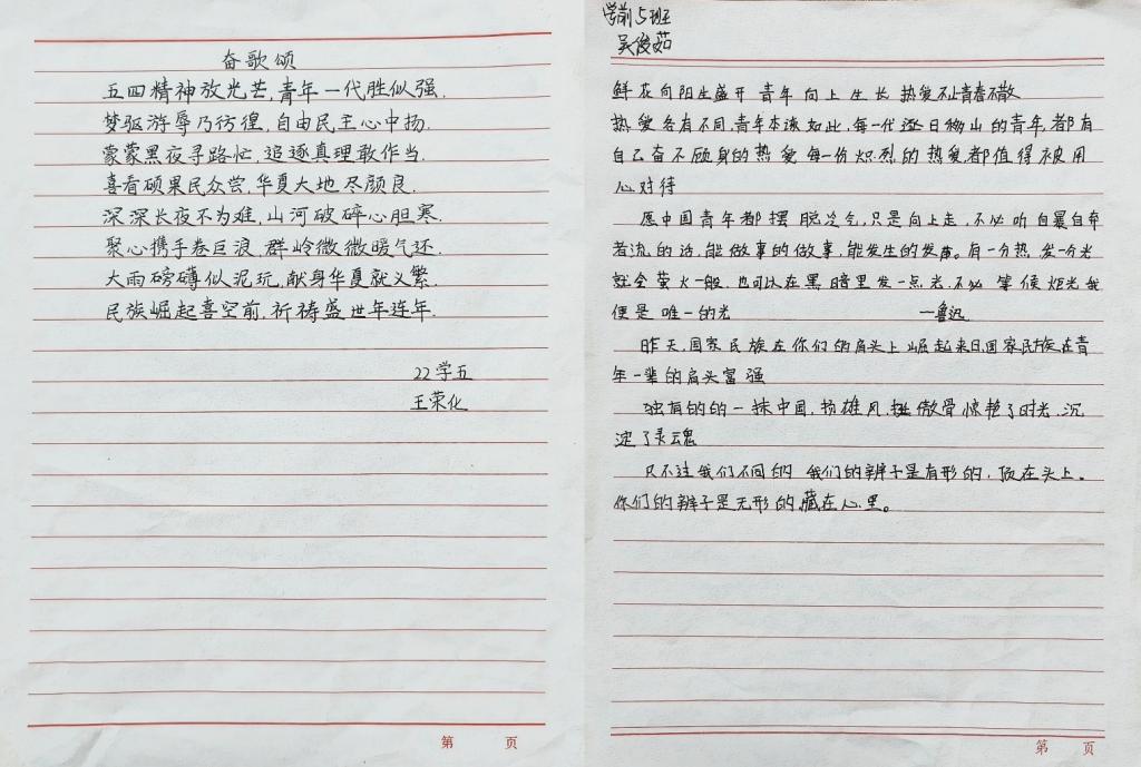同学们以翰墨言志,用笔书写五四精神,用墨展现青春梦想,每一幅作品都凝聚着同学们对五四精神的感悟,诠释着对五四精神的赤诚。