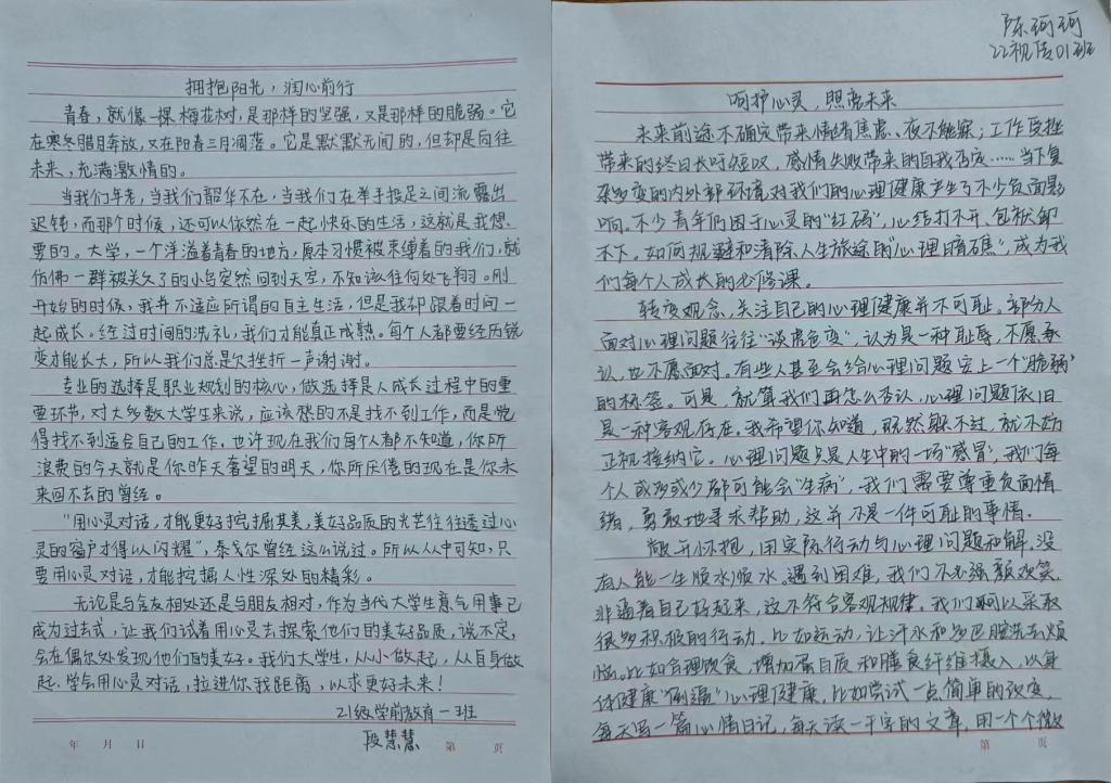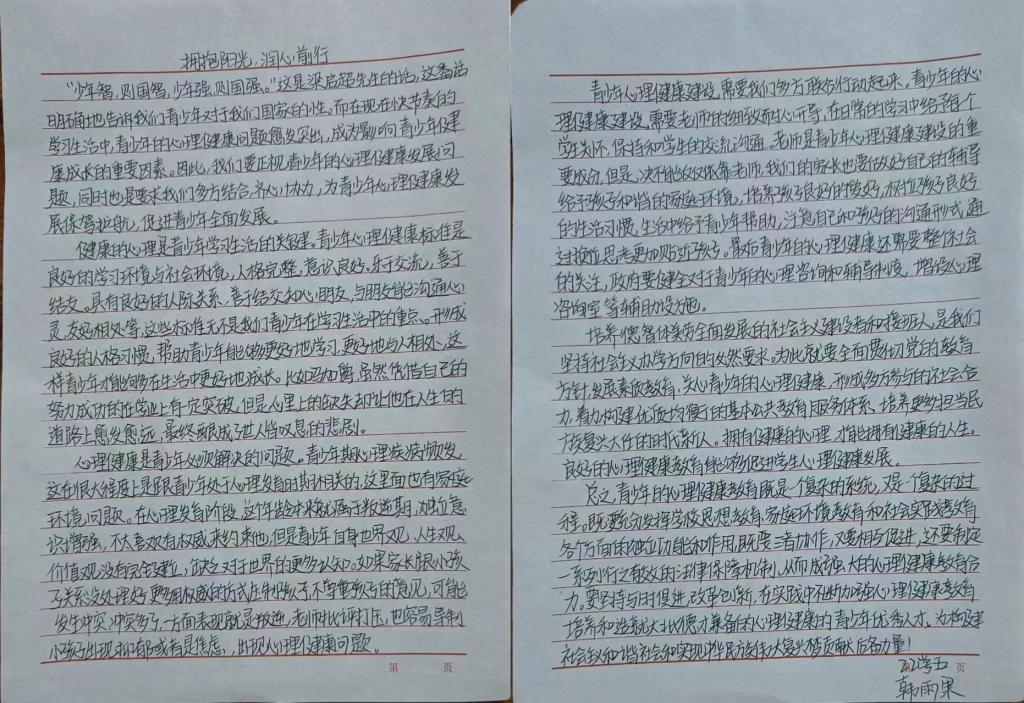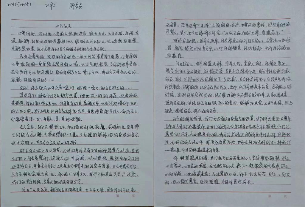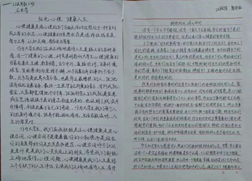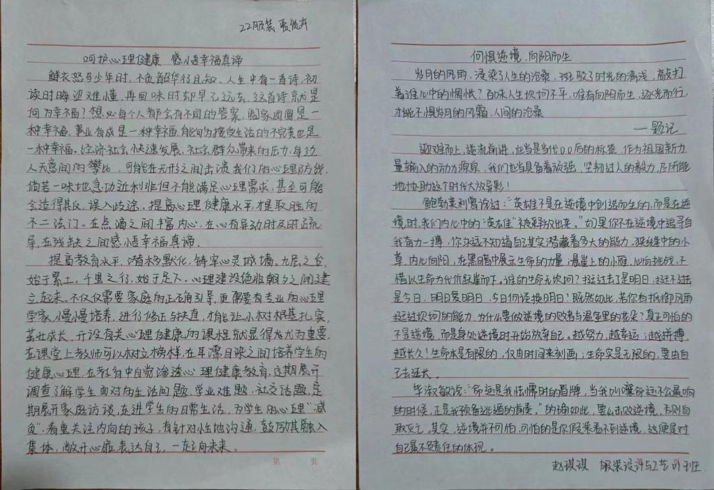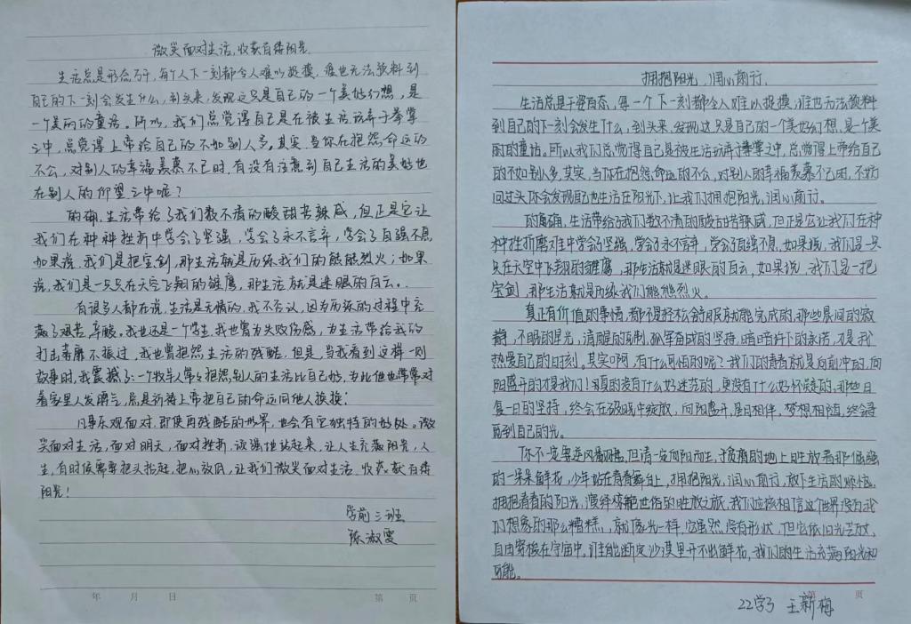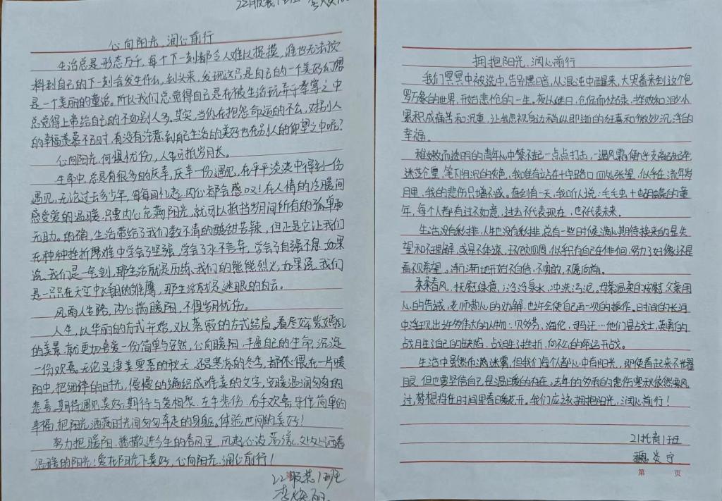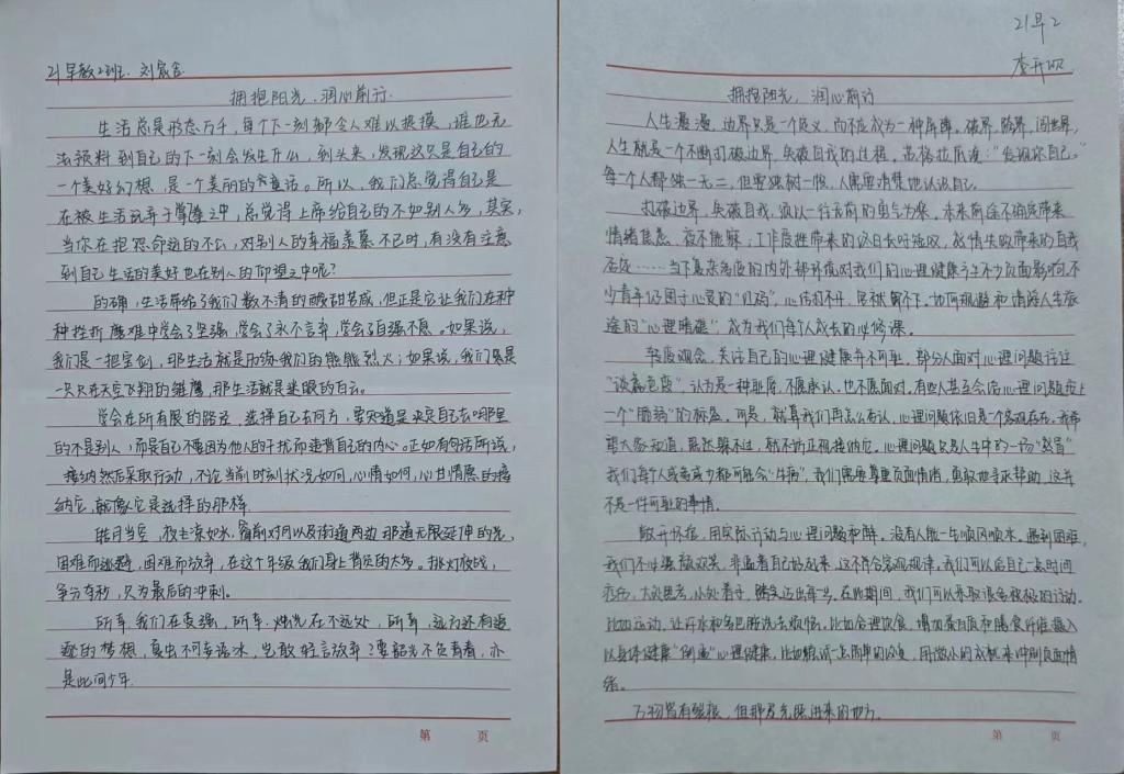 行动是个人态度的体现,文章是现实的一种映射,同学们将积极心态与艺术创作紧密结合,用文字表达心声,展青春风采,立乐观心态。