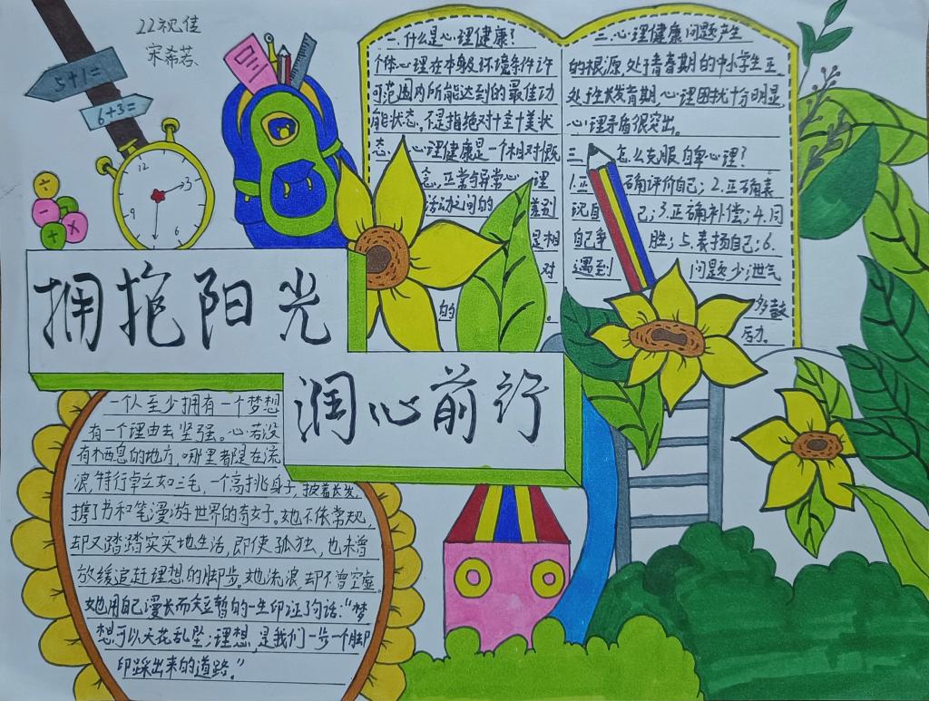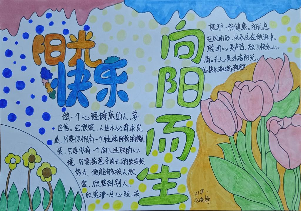 同学们创作的手抄报作品紧扣主题、内容丰富、富有知识性和趣味性,将自己的心灵感悟用文字、图画的形式表现出来,充分展现了同学们良好的精神风貌和心灵品格。