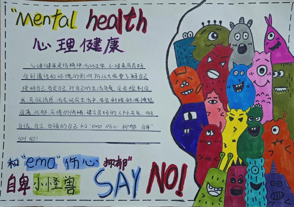 为增强公司员工的心理健康意识,培养积极向上的心理品质,引导员工关注自己的心灵成长,5月15日,公司开展心理健康教育主题手抄报系列活动。公司全体员工参加此次活动。