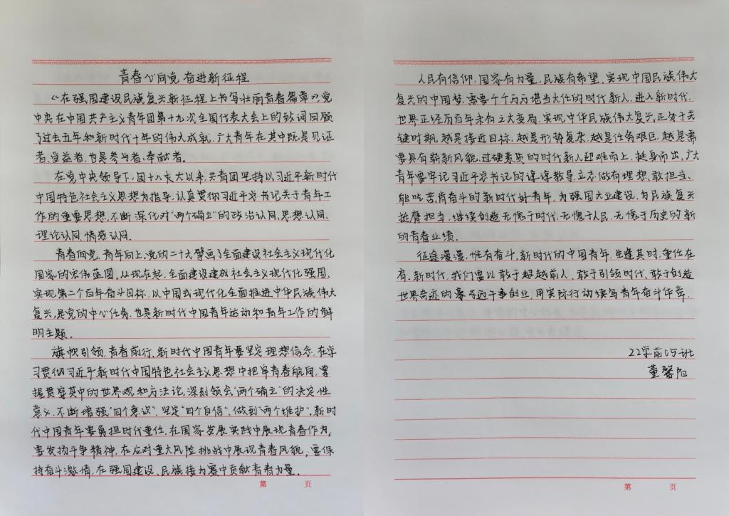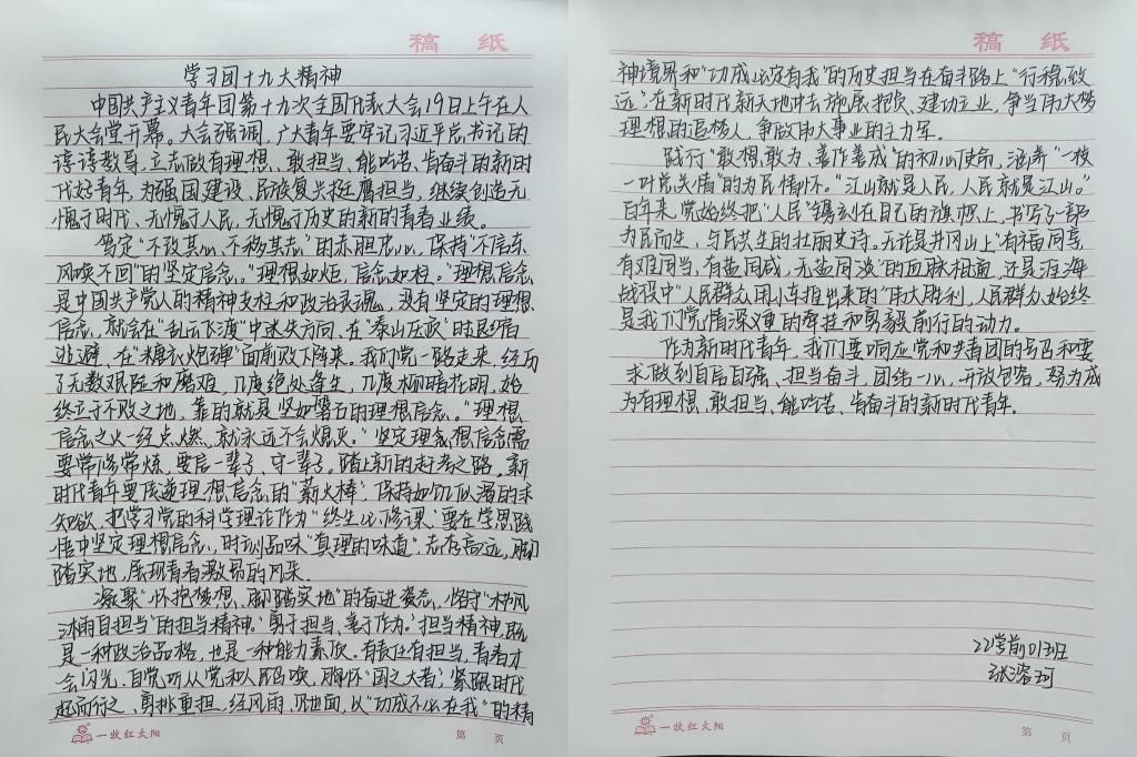 同学们积极响应,执起手中的笔,将心中隐而未发的情感倾注于笔尖,写出同学们的经历与感想,以文字传递这份热忱,同学们纷纷表示自己会牢记嘱托,坚定理想信念,踔厉奋发、勇毅前行,握紧手中的笔杆子,传播正能量,发出好声音。