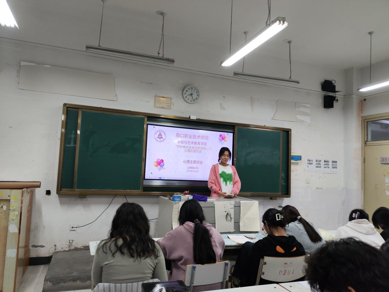 各班在教室开展心理健康教育主题班会。辅导员及团支书向同学们分享了老员工活中较常出现的人际交往、情绪管理、学习焦虑等问题,结合员工心理发展特点,向大家传授常见的解决自身压力的方法,并强调心理健康可以促进全面发展,为同学们以后的老员工活指明方向。最后,辅导员鼓励同学们要以积极的心态正确面对挫折、战胜挫折、迎接挑战,培养同学们认识自我、完善自我、接纳自我的情感态度。