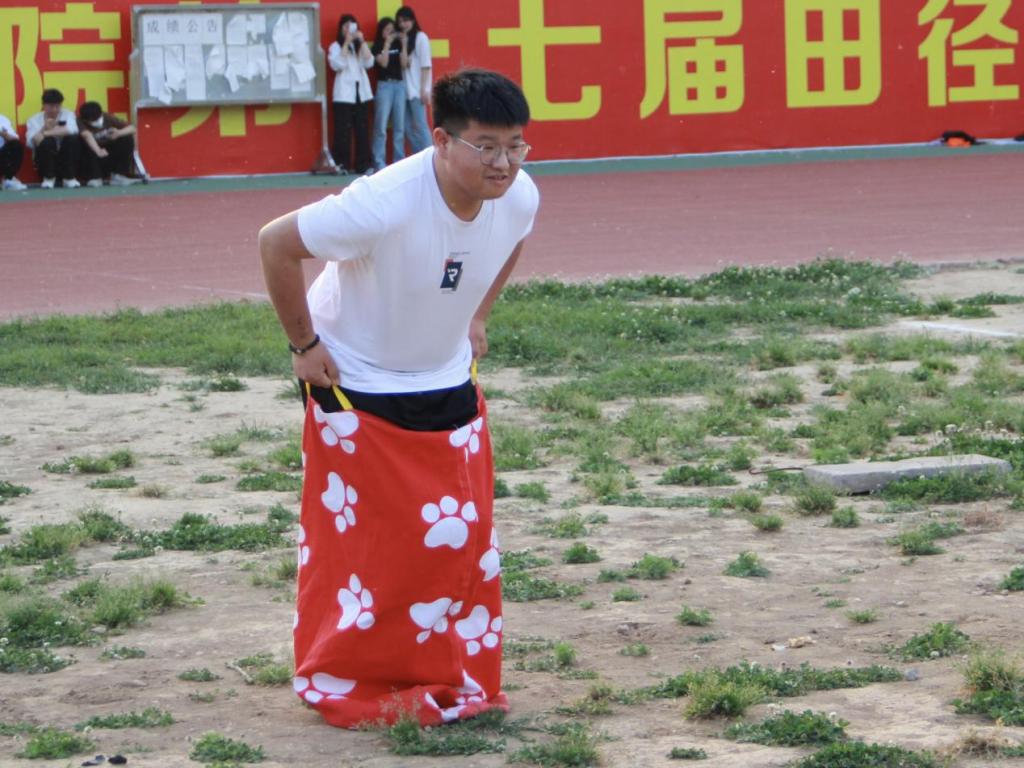同学们穿上了可爱的跳袋,化身活泼的“小袋鼠”。他们手提跳袋,奋力向前跳跃。每一次跳跃都是对身体的挑战,彰显出青春活力与激情。