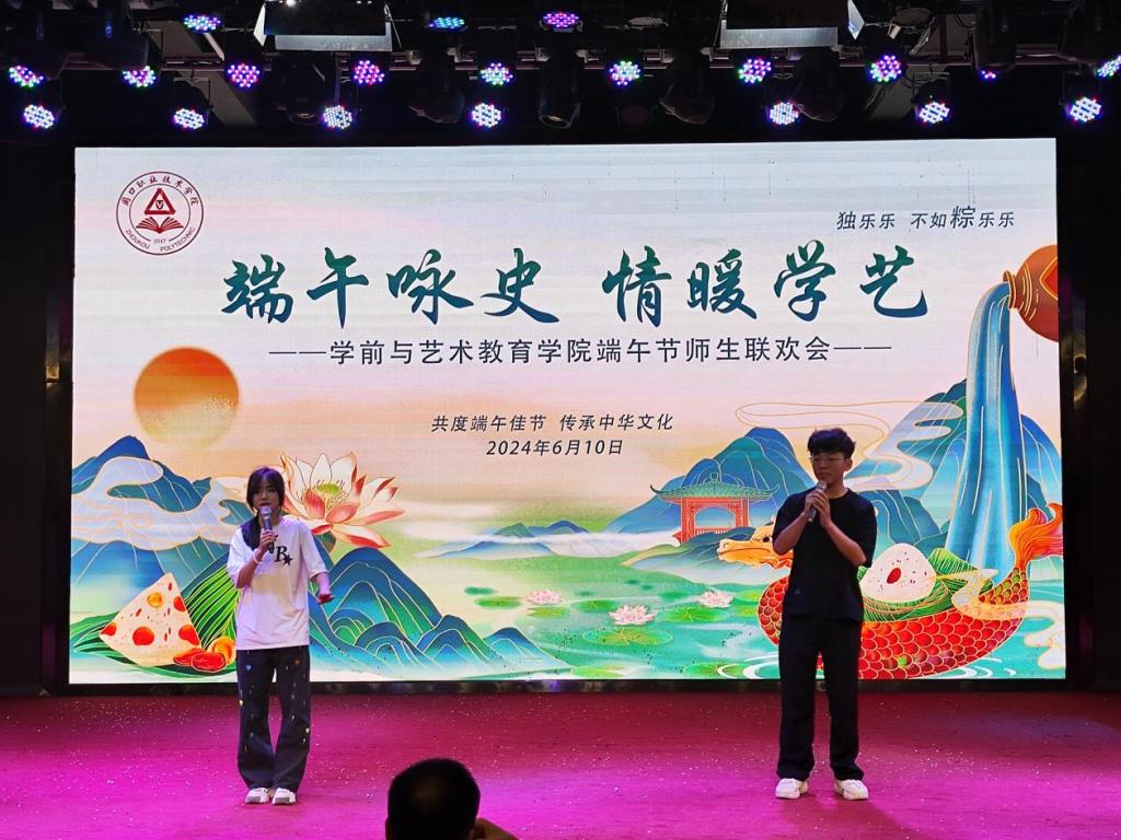 为进一步弘扬中华民族传统文化,感悟传统节日的丰富内涵,增强文化自信,6月10日上午,yl7703永利在艺术演播厅举办“端午咏史 情暖学艺”端午节师生联欢会。公司党总支书记王春生、副经理耿润、学管办主任郑玉凡、教管办主任李晨阳出席联欢会,22、23级辅导员代表及部分留校员工参加联欢会。联欢会由副经理杨晨主持。