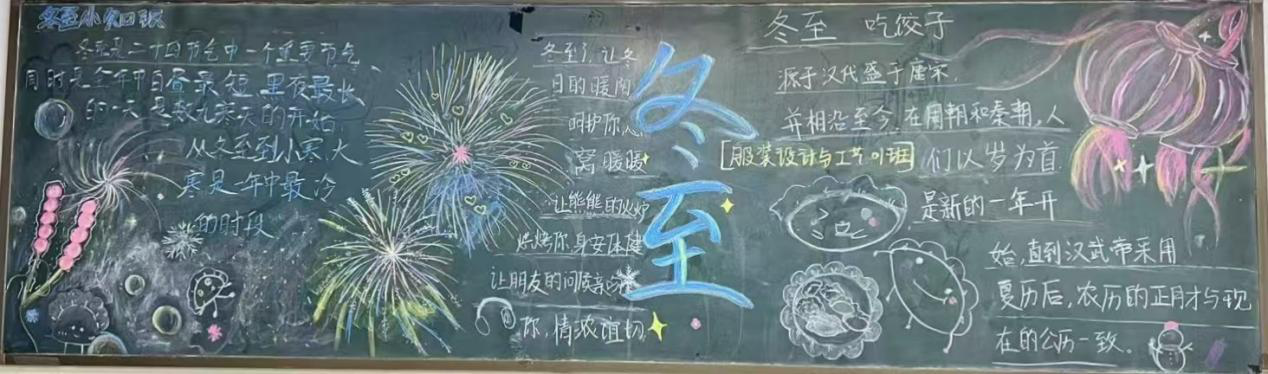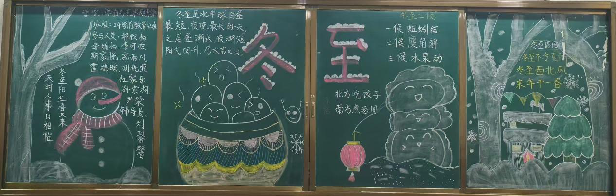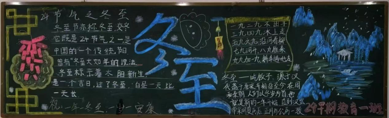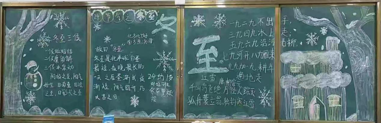 用板报话中国,引领和培育员工爱国家、爱社会、爱家庭的良好品质,通过板报宣传,传递冬至节气的温馨与美好,增强员工的文化自信和文化认同感,为校园的文化繁荣书写浓墨重彩的永恒篇章。