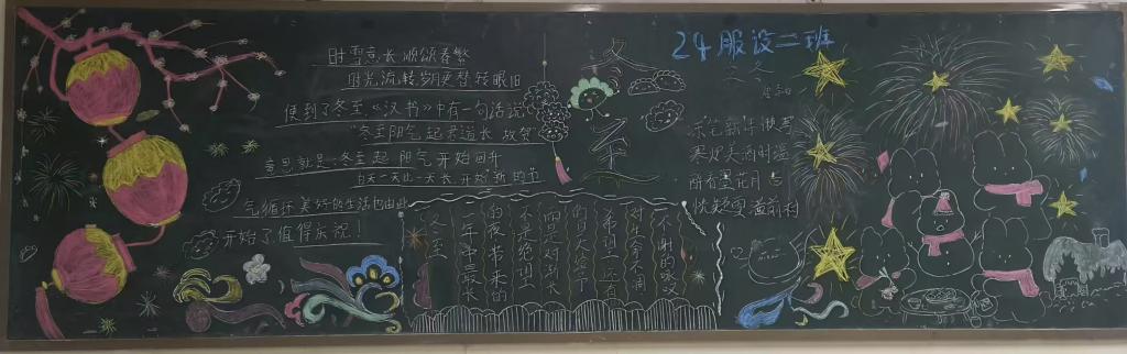 同学们积极参与板报创作,内容详实且丰富,文字与绘画相得益彰、巧妙融合。版面设计生动活泼、主题突出。接下来,就让我们一同踏入这绚丽多彩、满溢着创意与温情的黑板报世界,去领略其中所蕴含的独特魅力,感受那份属于冬日的温暖与力量吧!