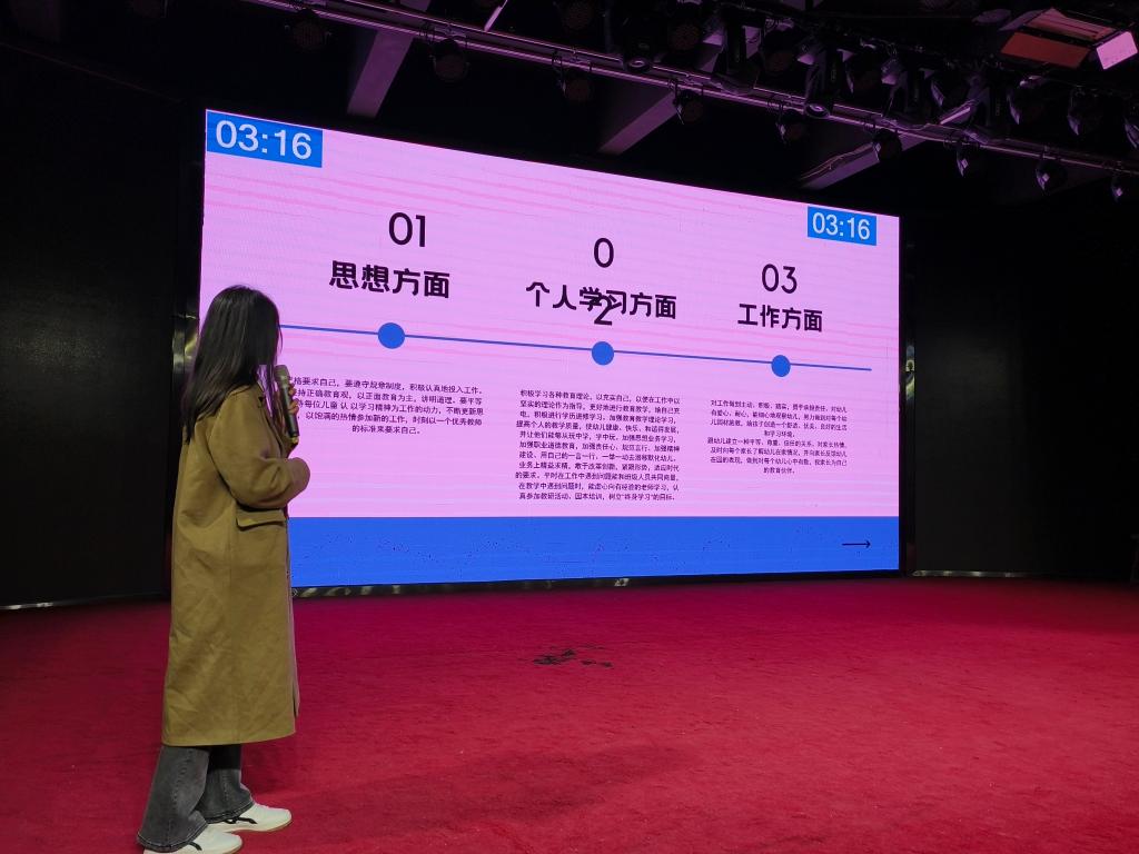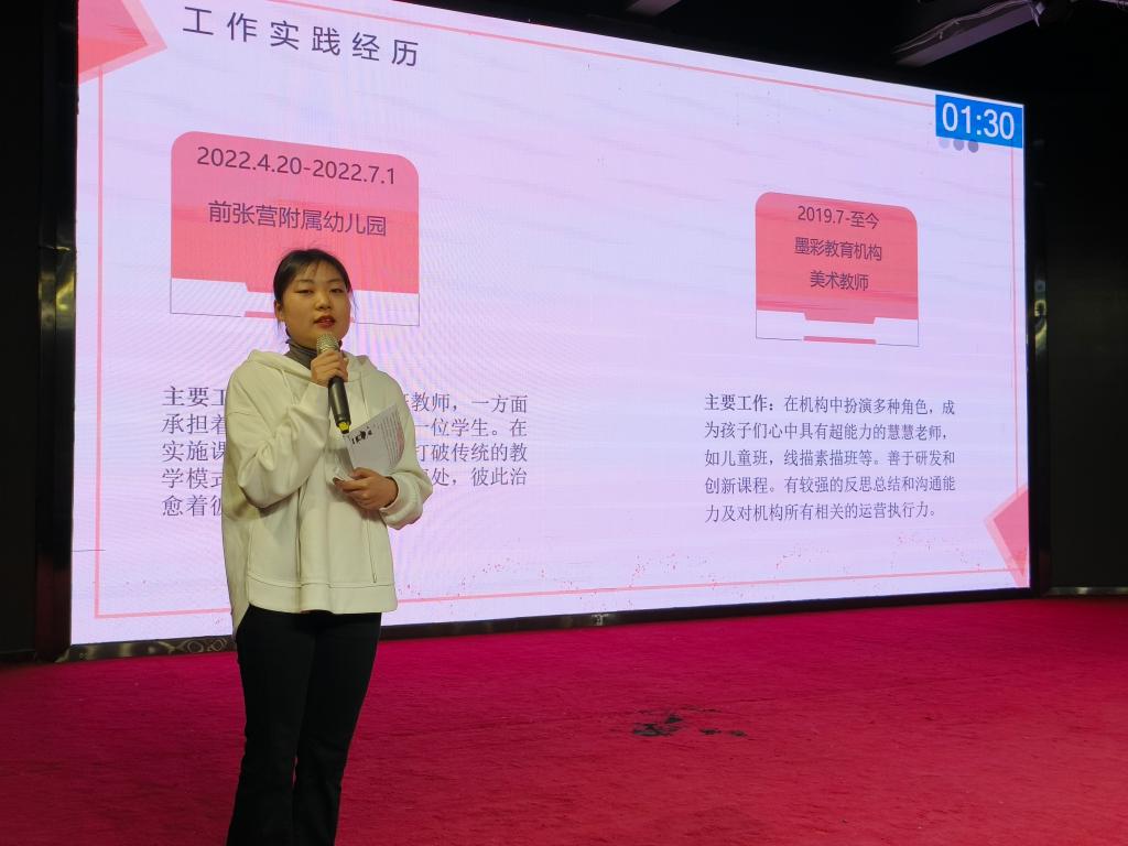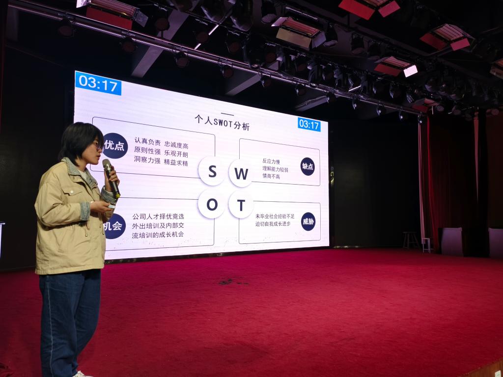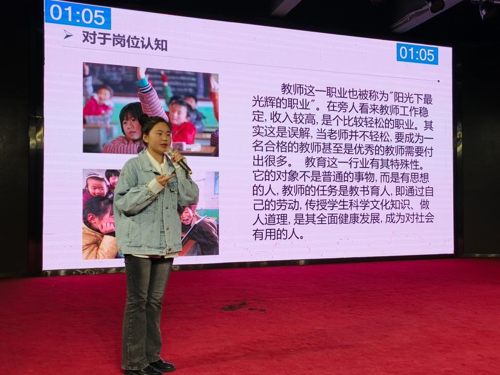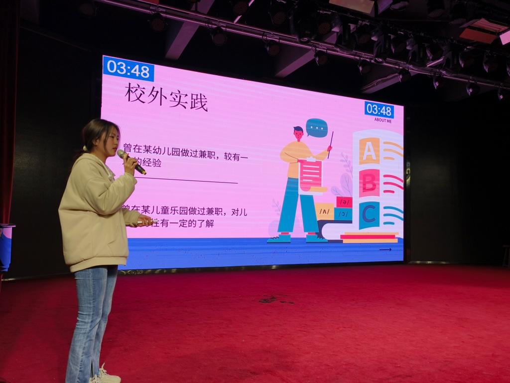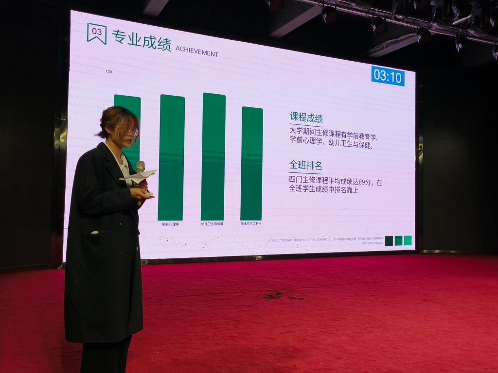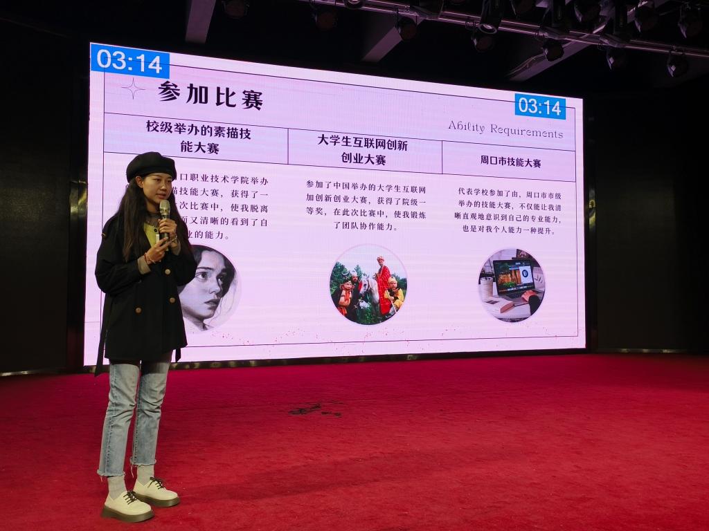 在比赛过程中,参赛选手依次上台,逻辑清晰,沉着应对,运用PPT展示简历设计,对个人基本情况、性格特点、专业能力等进行介绍和说明。每一位参赛选手在讲解结束后,评委们都进行了公平公正的打分以及提问和点评。