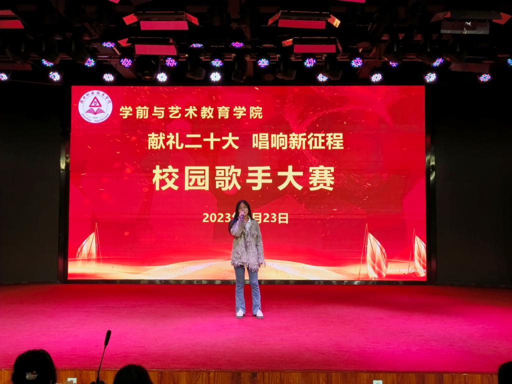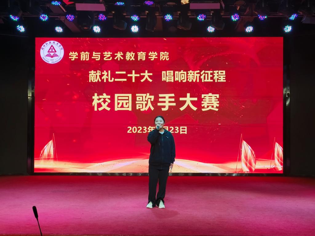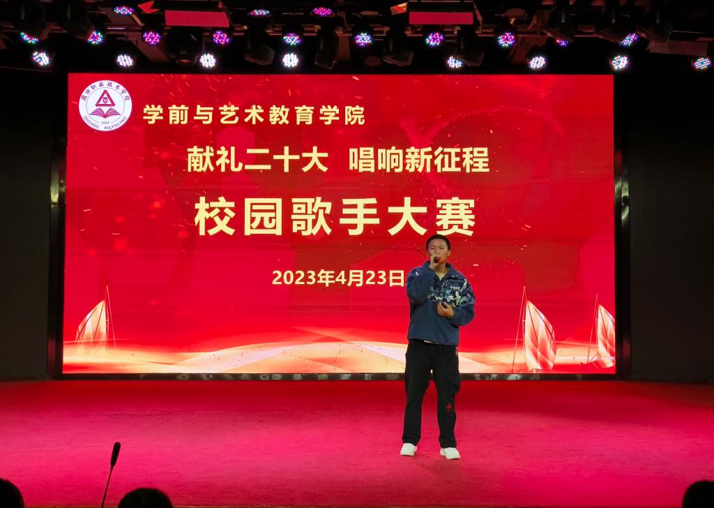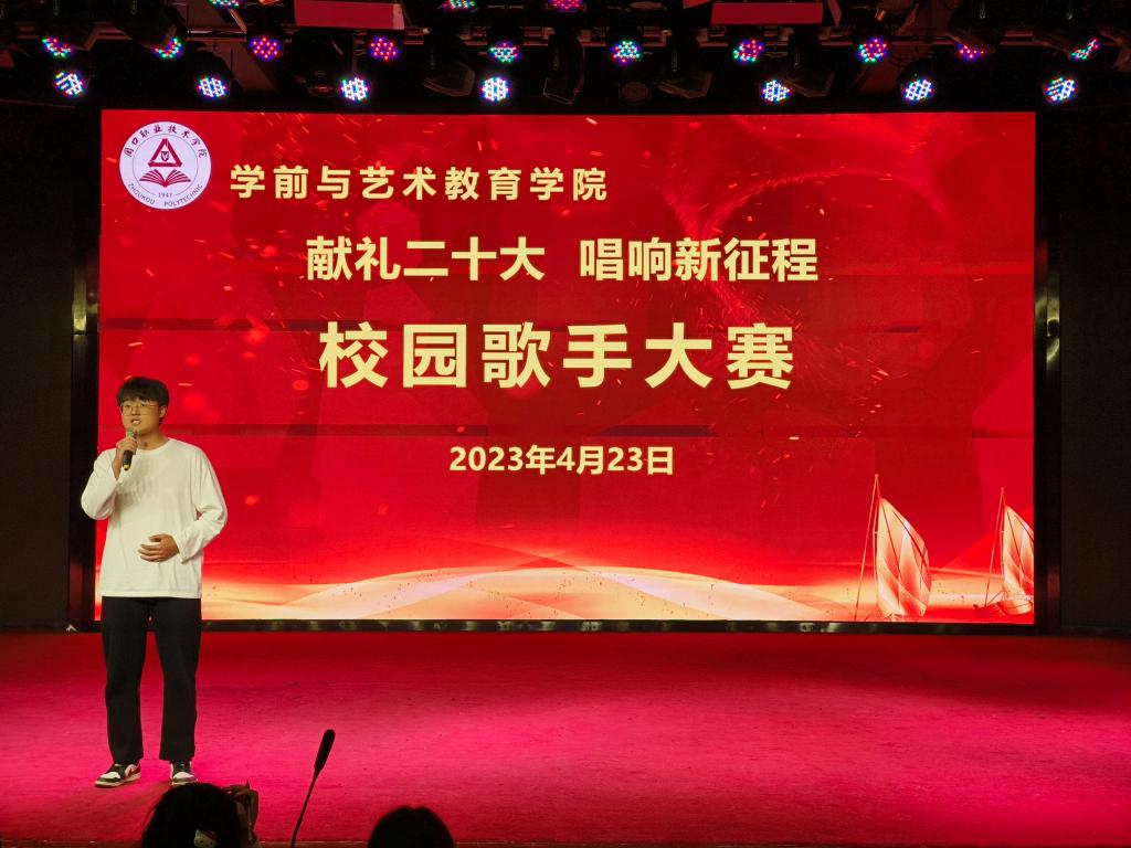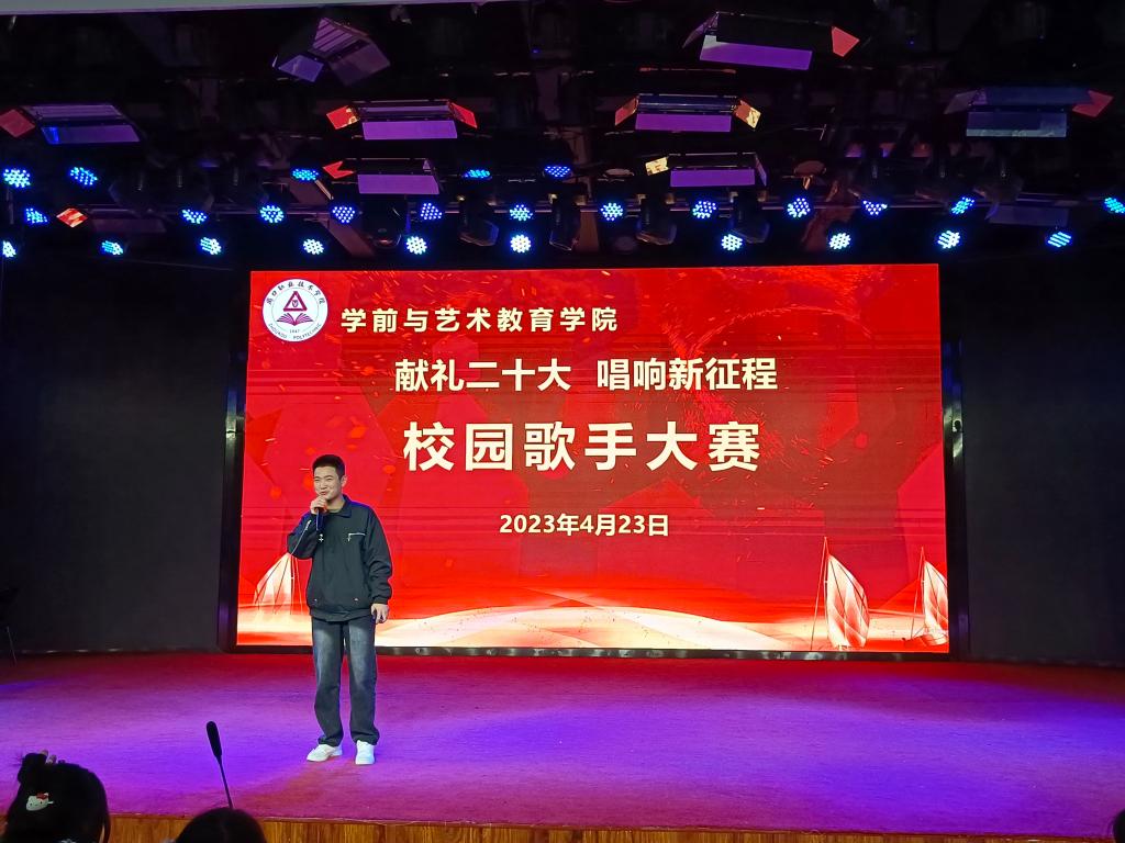 各位参赛选手依次上台演唱,他们精神抖擞、意气风发,在舞台上尽情的表现自我、张扬个性,以优美的歌声、向上的激情,歌唱祖国的美好,感念党的恩情,唱出了学艺学子的真我风采、唱出了当代青年的热情与朝气。