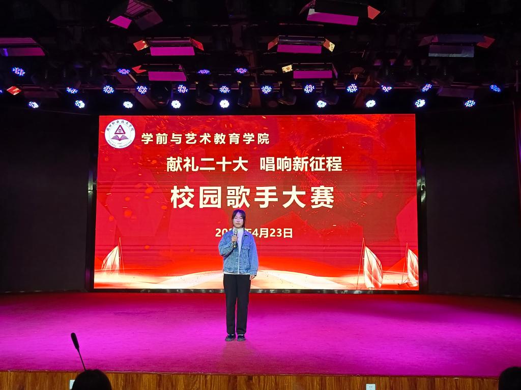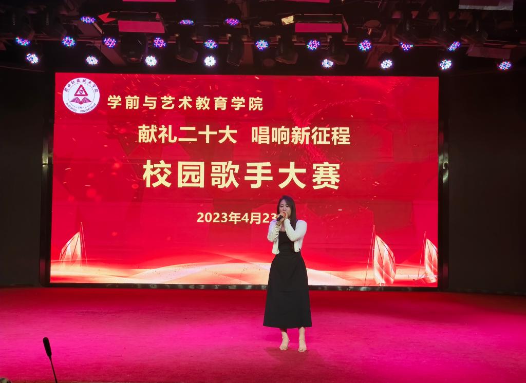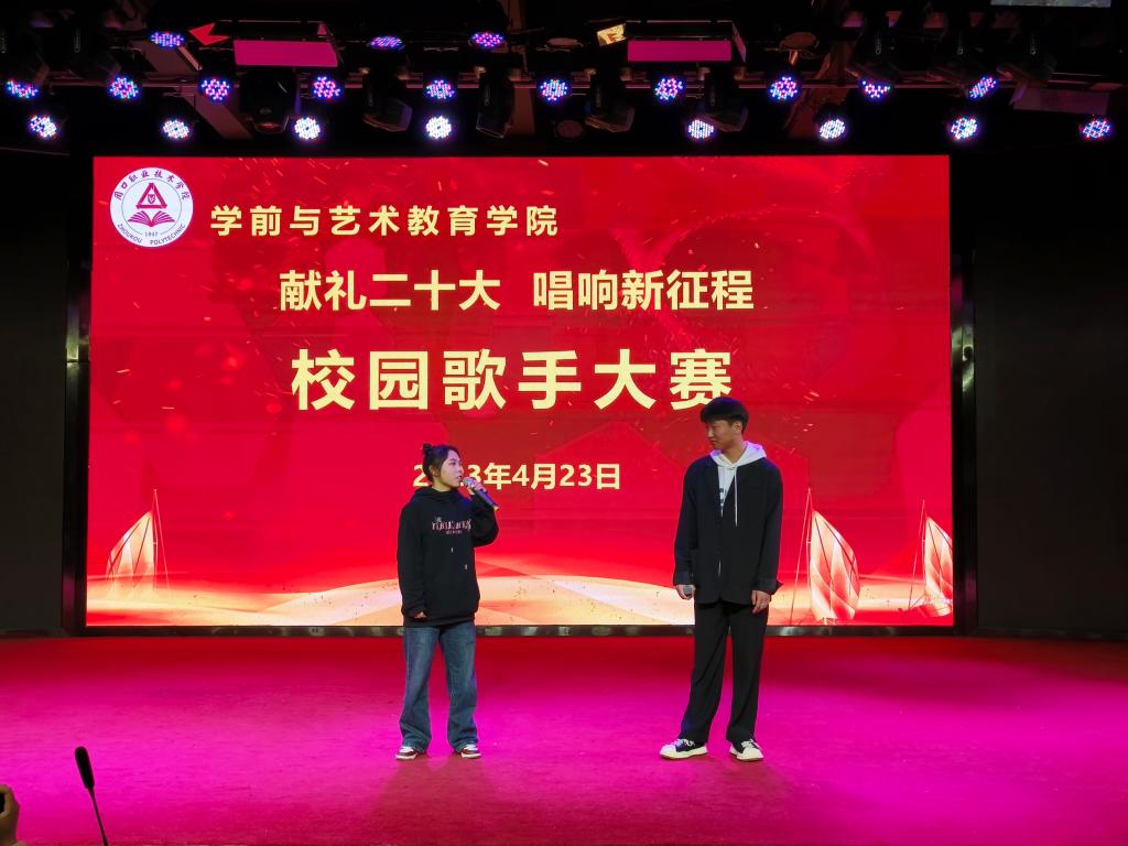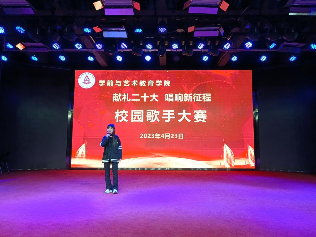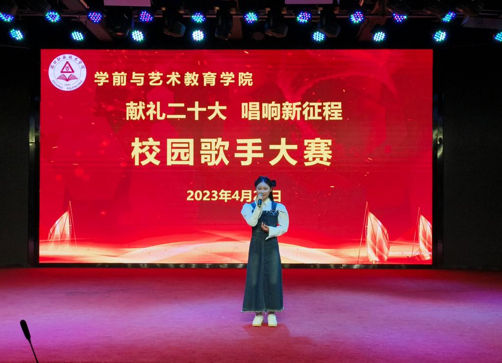 各位参赛选手依次上台演唱,他们精神抖擞、意气风发,在舞台上尽情的表现自我、张扬个性,以优美的歌声、向上的激情,歌唱祖国的美好,感念党的恩情,唱出了学艺学子的真我风采、唱出了当代青年的热情与朝气。