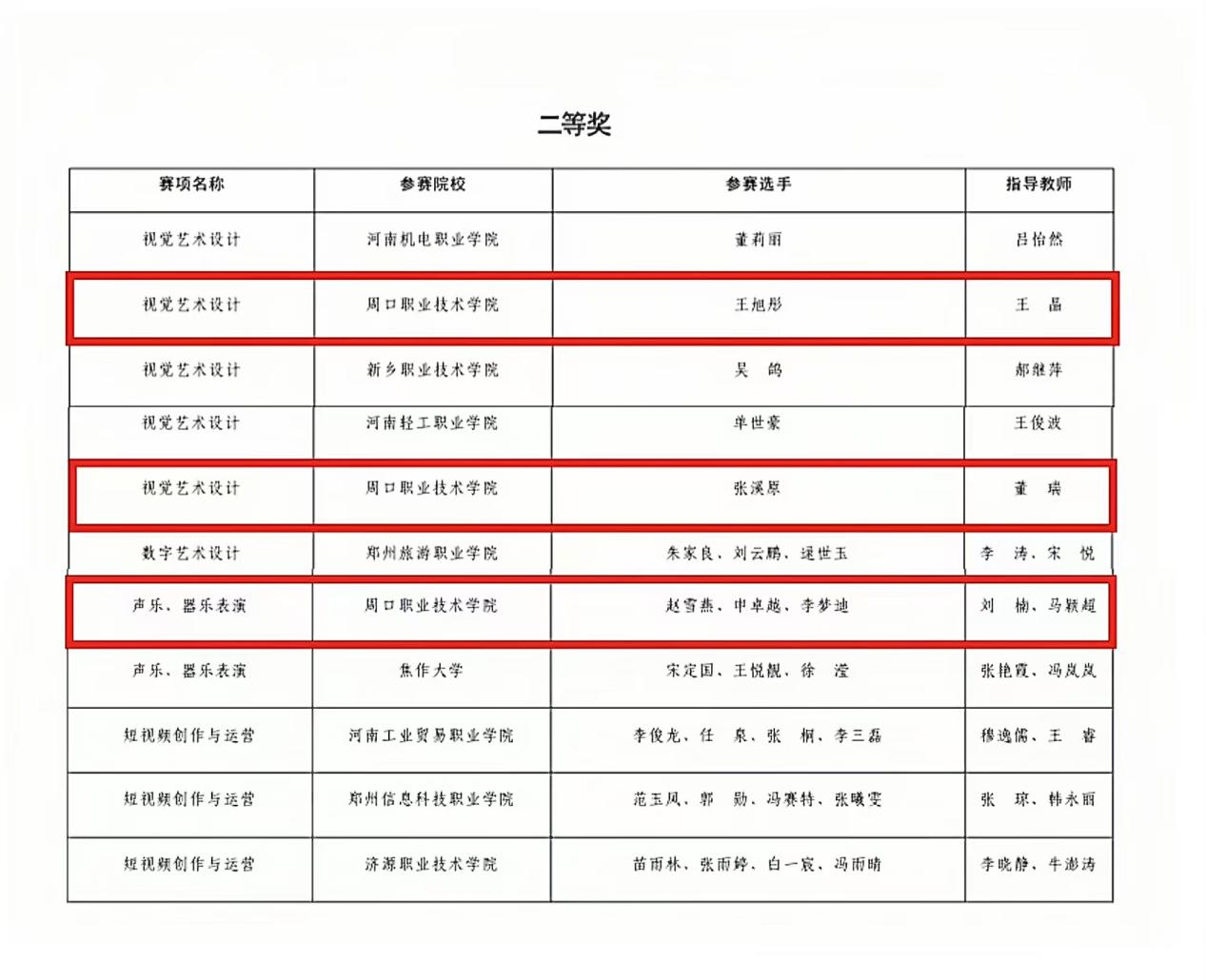 声乐、器乐表演赛项获二等奖1项
