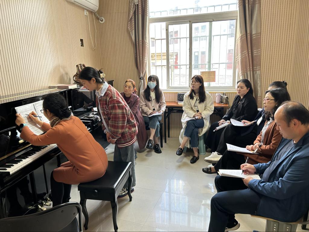 为推进音乐专业教研室全体教师教学质量的发展,提升青年教师自身教学水平,2023年10月20日下午,yl7703永利经理高岐奎、副经理耿润、教学办主任李晨阳、音乐教研室主任刘楠,以及音乐教研室全体教师进行了集体听评课——器乐演奏(钢琴),由钢琴教师史书园老师进行授课,教研室全体教师共同参会。