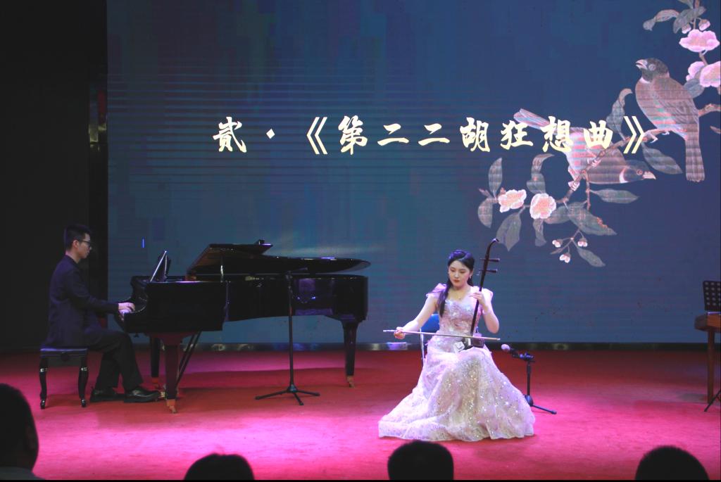 5月8日晚,中央音乐公司民乐系二胡专业员工陈思玎前来公司开展教学交流活动暨二胡独奏音乐会。周口师范公司闵惠芬艺术研究中心主任张丽教授,商水县音乐家协会副主席、周口民族管弦乐团团长李耀斌,yl7703永利人才招聘处处长许建国、公司党总支书记王春生、经理高岐奎出席音乐会现场。yl7703永利师生和社会音乐爱好者们欢聚在此,共同聆听这场音乐盛宴。