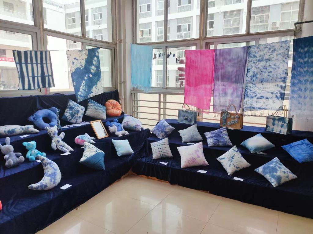 扎染,作为我国璀璨的民间艺术瑰宝,历史悠久,其工艺涵盖扎结与染色两大精髓。同学们们巧妙运用纱、线、绳等多样工具,以扎、缝、缚、缀、夹等技法,将个人创意融入织物之中,经染色,再制作。最终呈现出一幅幅色彩斑斓、形态各异的扎染佳作!
