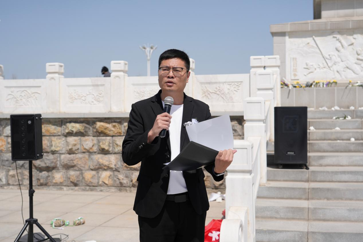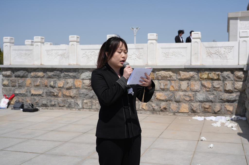 党员教师代表王雪站在纪念碑前,深情回顾了革命先烈的英勇事迹。她指出,同学们应肩负着继承先烈未竟事业和建设强大祖国的崇高使命,并呼吁大家铭记历史,以实际行动规范言行、努力学习,传承先烈优良传统,为祖国建设贡献自己的力量!