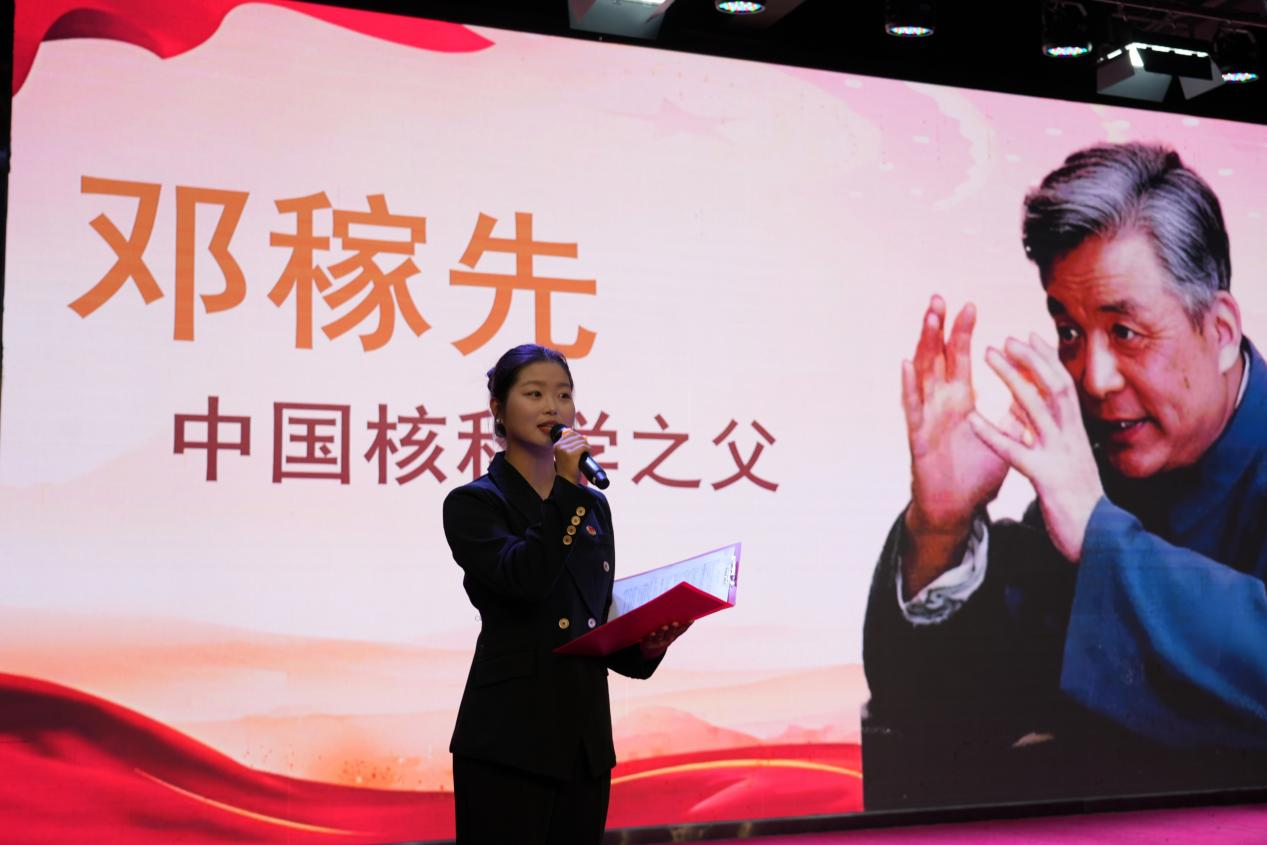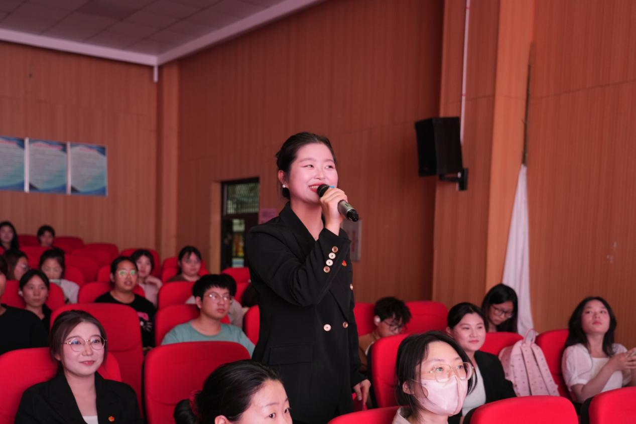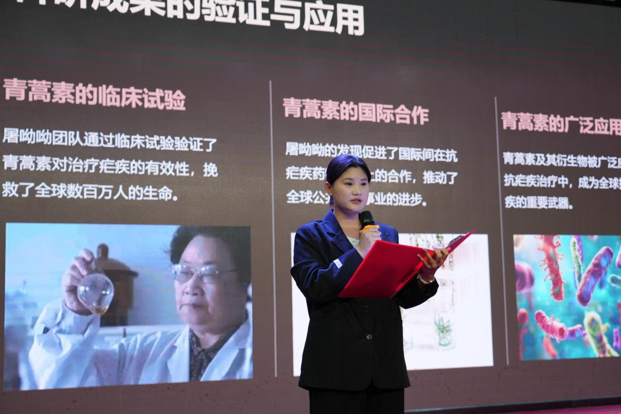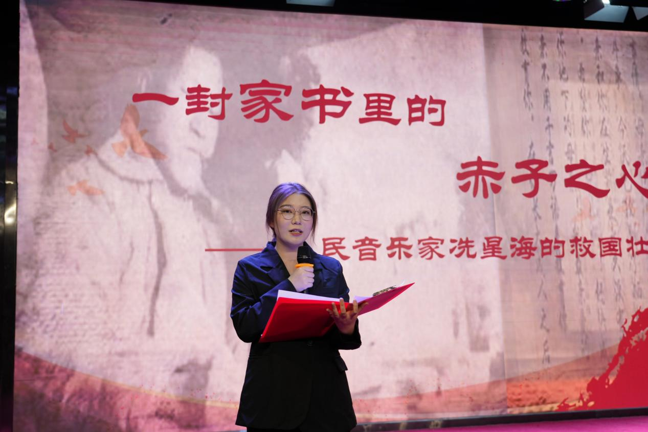 几位宣讲人依次登台。她们怀着敬仰之情,深情地讲述着一个又一个的英雄故事,引领着现场师生“穿越”到那战火纷飞、热血激昂的峥嵘岁月。