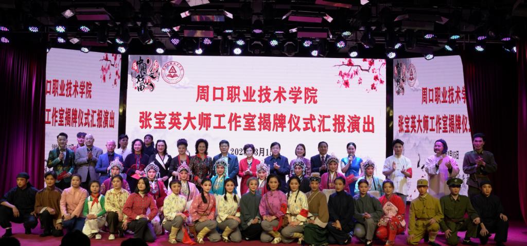 董事长李清臣分别为豫剧表演艺术家张宝英、豫剧崔派艺术理论家杨奇颁发特聘教授聘书。党委书记刘士欣、张宝英大师共同为“大师工作室”揭牌。
