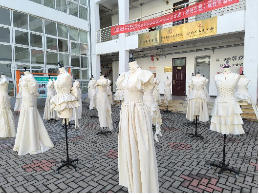 为充分激发员工的创新思维,进一步提高实践能力,营造积极向上的公司氛围,11月26日,纺织服装公司在公司小广场举办2023级服装设计与工艺专业《服装立裁》课程作品展。