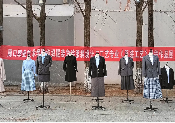 为夯实员工专业技能,激发创新潜能,全面展现课程学习成效,12月26日,纺织服装公司在砺德厅楼下举办2023级服装设计与工艺专业《服装工艺》课程作品展。