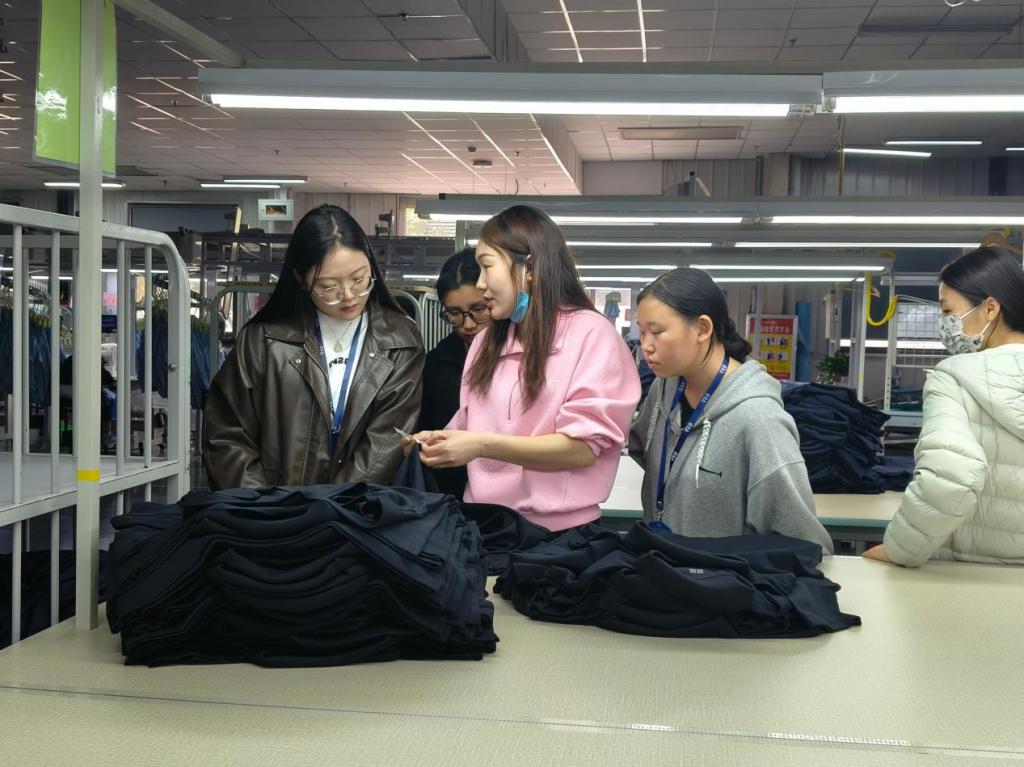 抵达企业后,企业负责人向师生们详细介绍企业情况、见习时间及具体见习内容,并耐心解答了员工们的疑问。随后,同学们深入生产一线,亲身体验从面料染整到服装后整理的制作全过程。通过实践操作,同学们不仅巩固理论知识基础,还收获实践经验,深刻体会到理论与实践相结合的重要性。