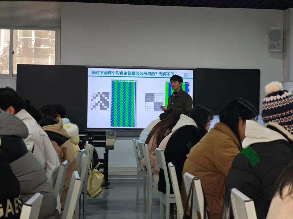授课过程中,肖杰老师以纺织CAD软件核心操作技能为重点,结合面料花型设计等实际案例展开教学,教学思路清晰,软件示范标准,互动引导细致,充分展现了良好的专业素养。