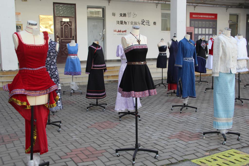 为夯实员工专业基础,激发创新设计思维,1月12日,纺织服装公司在公司小广场举办2024级服装设计与工艺专业《服装产品设计》课程作品展。